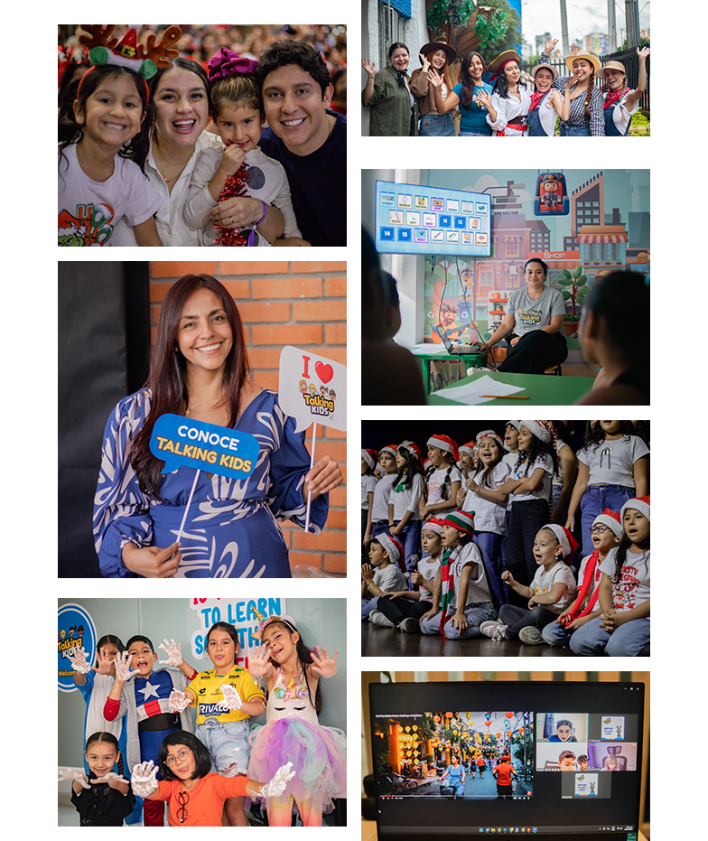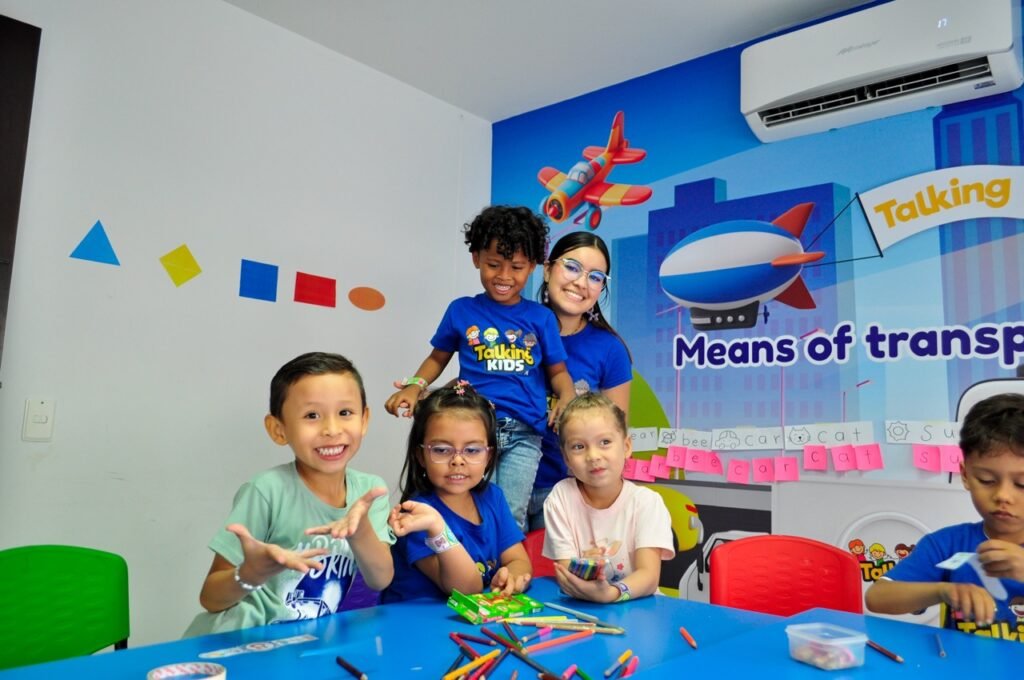 Imagina a tu hijo dominando el inglés sin esfuerzo, aprendiendo con juegos, actividades lúdicas y 100% en inglés. En Talking Kids, ofrecemos cursos de inglés para niños de 2 a 14 años, en modalidad presencial en Bucaramanga y virtual en cualquier parte del mundo.. Un método efectivo, lejos de la enseñanza tradicional, para que tu hijo adquiera vocabulario y confianza de manera natural.